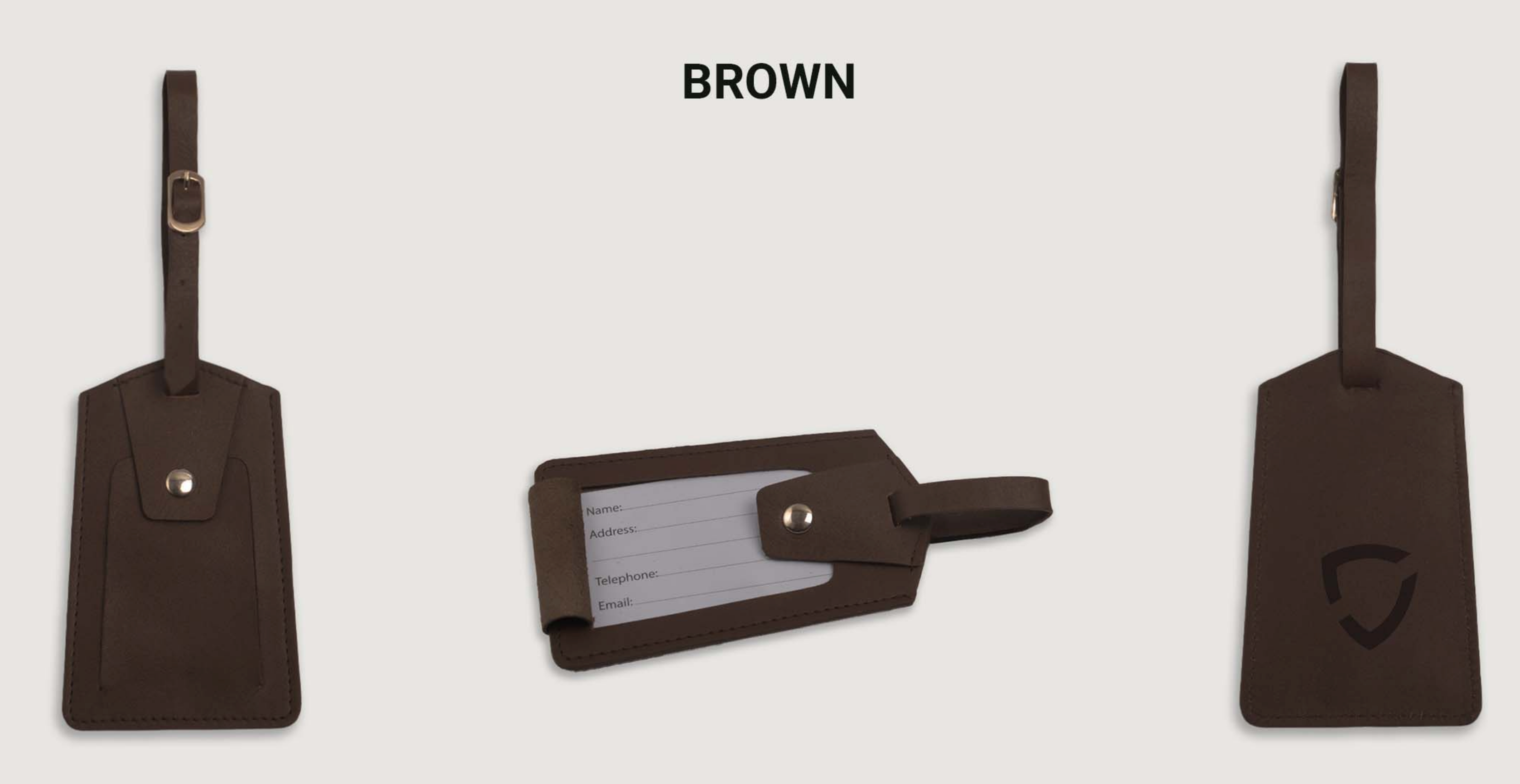 • Luggage tags in brown