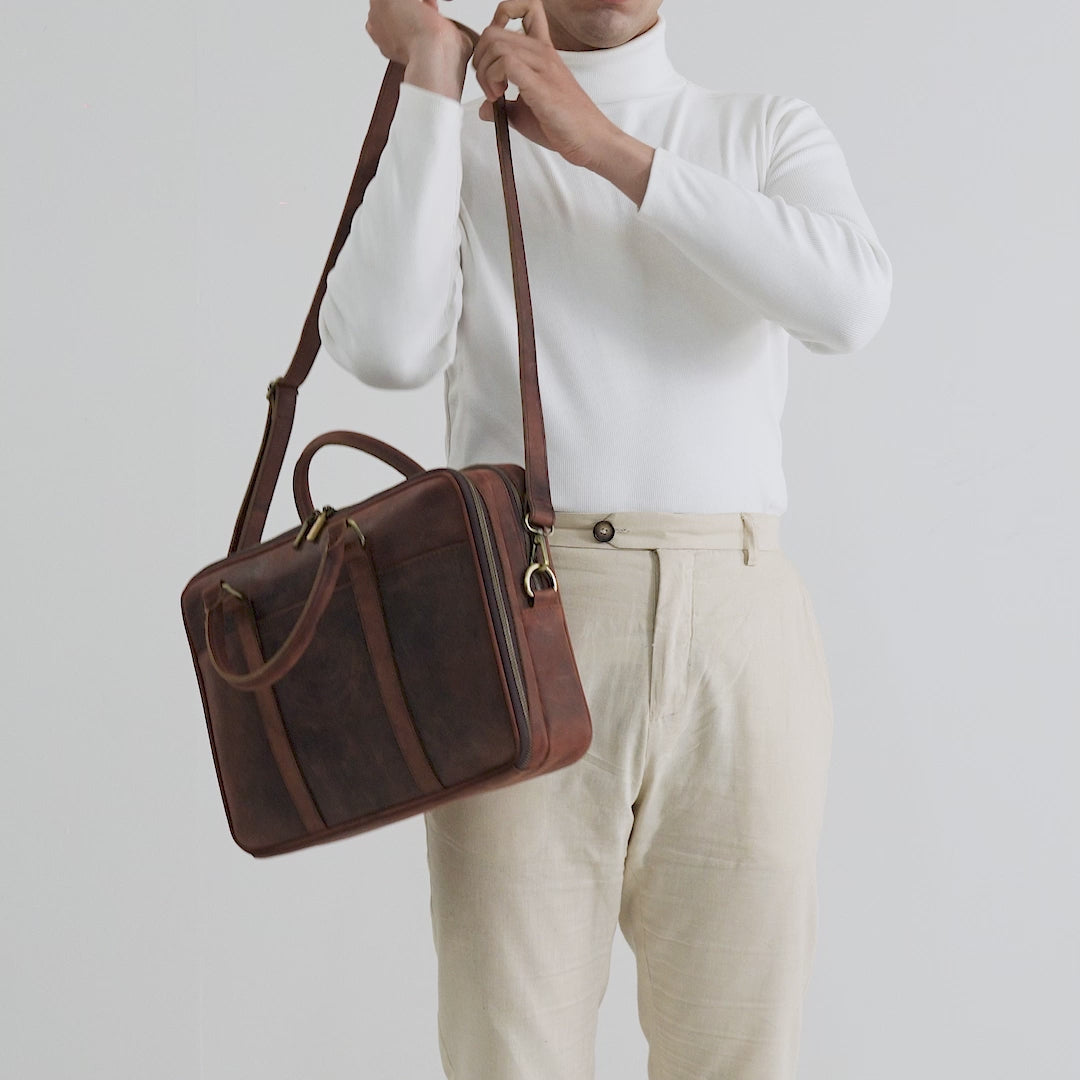 The Preston Vintage Distressed Brown Leather Briefcase